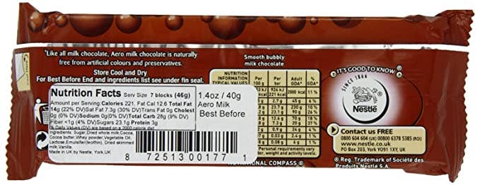 Light and bubbly, this unique candy bar is "filled" with air bubbles for an incredible melt-in-your-mouth experience. A deliciously creamy milk chocolate bar, it's a small piece of heaven in every bite. Loved by people all over the world, Nestle has been spreading smiles through their chocolates and treats since 1905.
