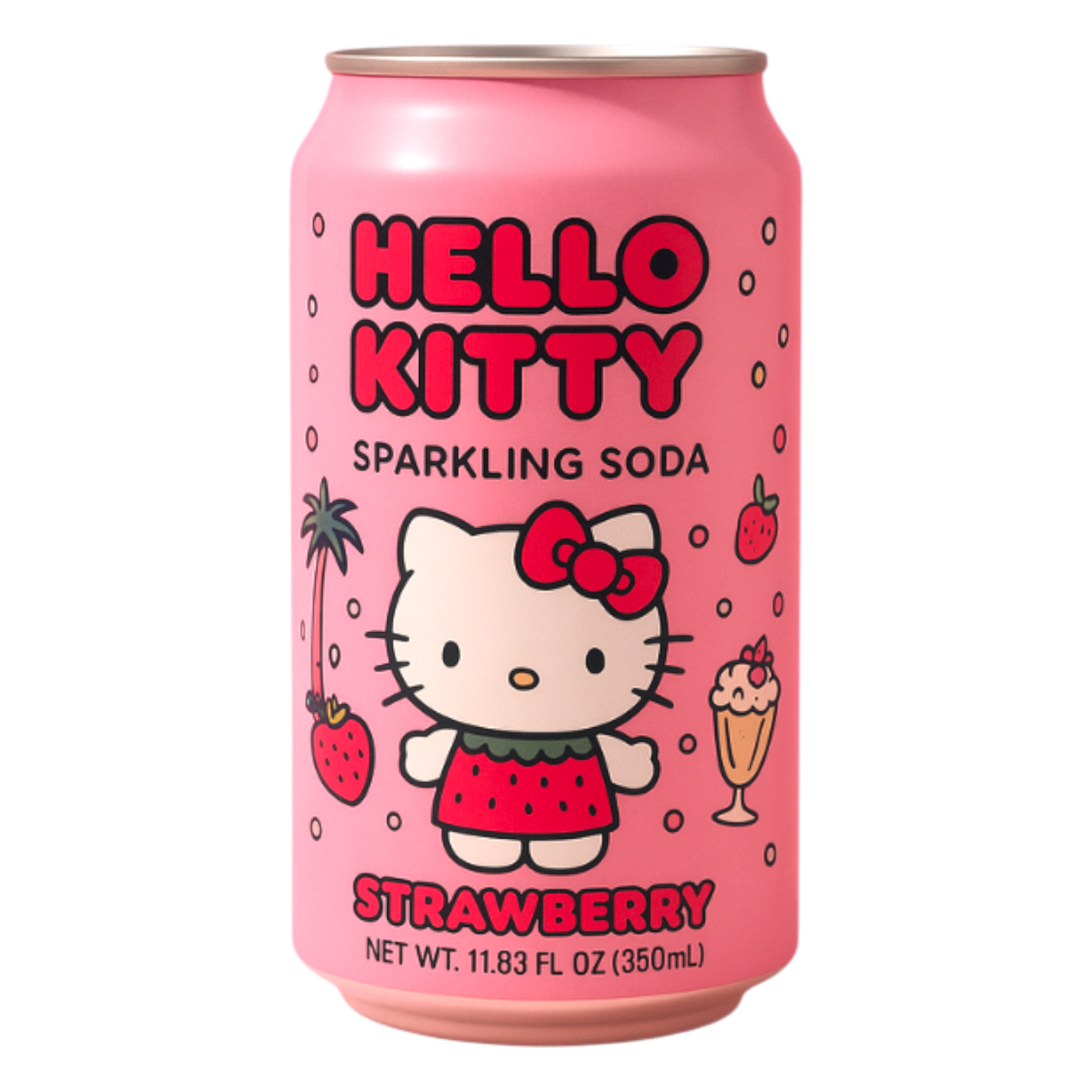 Hello Kitty Strawberry Sparkling Soda. Licensed by Sanrio, these sparkling sodas are both fun and delicious. Product of Japan