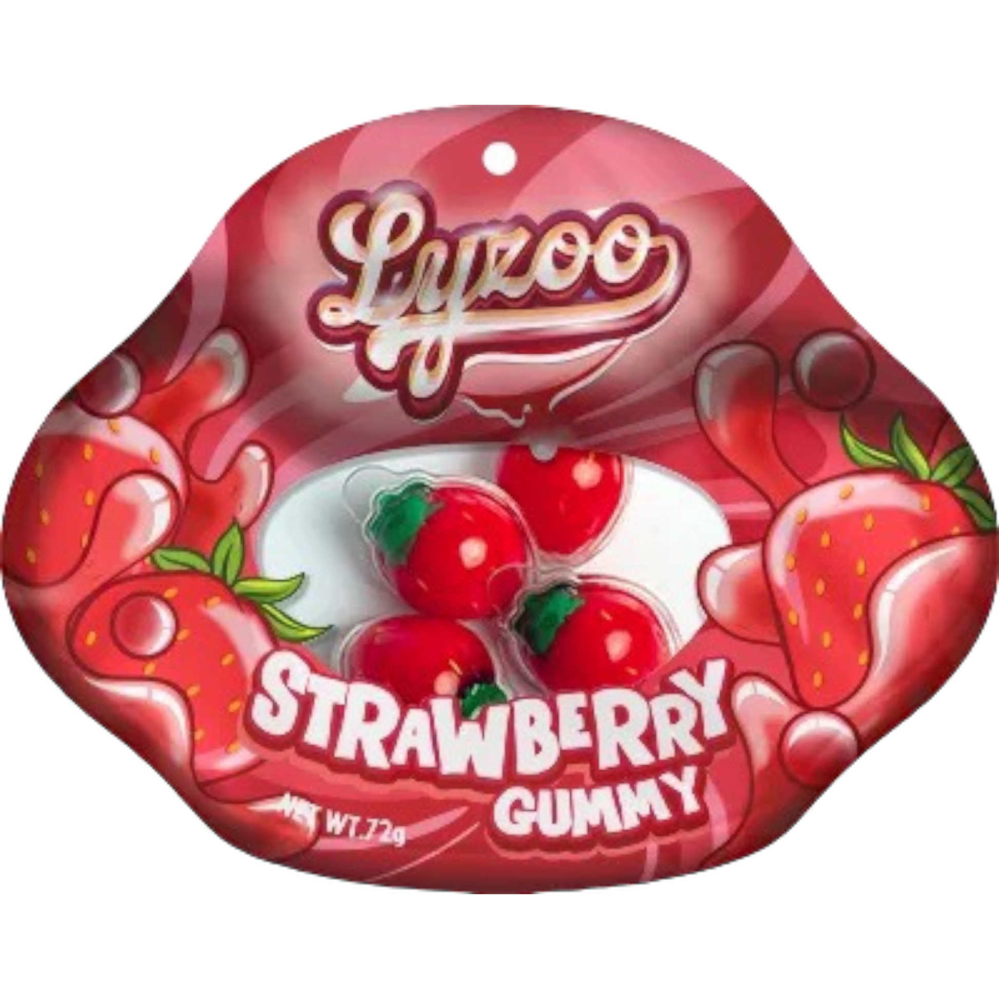 Lyzoo Strawberry Gummy. Strawberrry shaped gummies that are each wrapped in an individual casing. Trending on social media, Lyzoo Strawberry Gummy is both delicious and fun!
