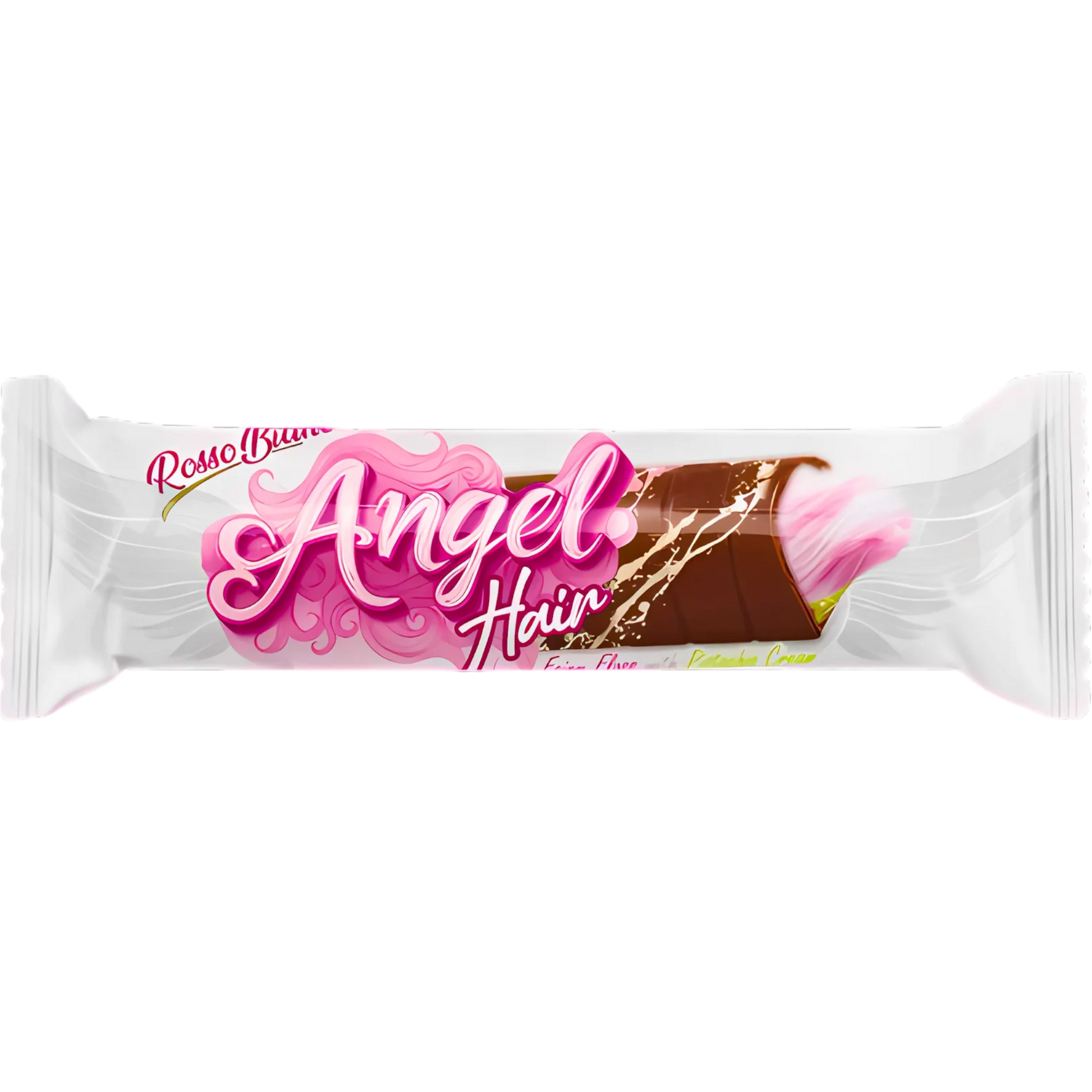 Rosso Bianco Angel Hair Dubai Chocolate. Milk Chocolate filled with cotton candy and pistachio cream.
