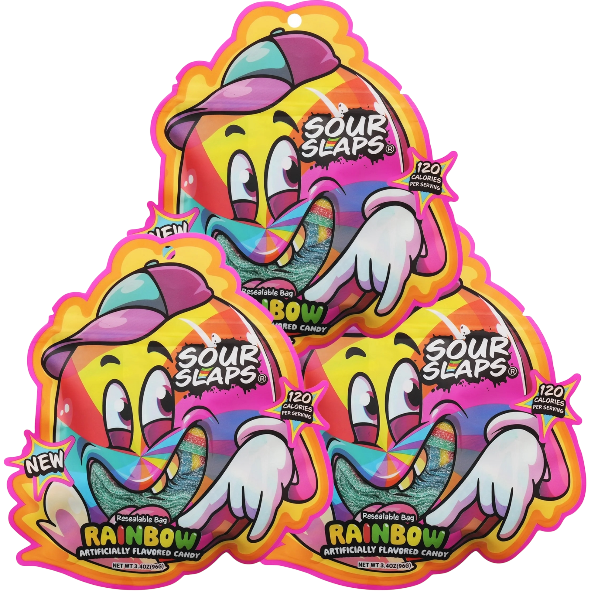 Sour Slaps Rainbow are ultra-tangy, mouthwatering sour belt candies packed with bold rainbow flavor! These thin, stretchy belts deliver an intense sour punch followed by a deliciously sweet finish. Perfect for sour candy lovers who crave a lip-smacking treat! Comes in a convenient resealable bag